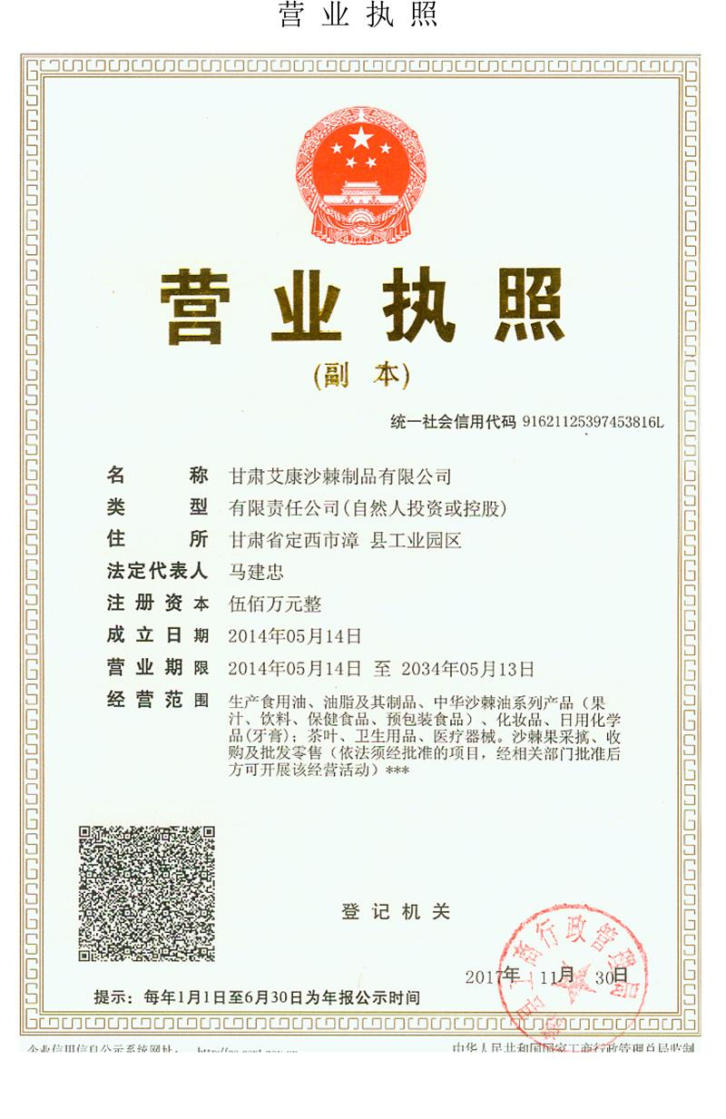 公司名称: 甘肃艾康沙棘制品有限公司